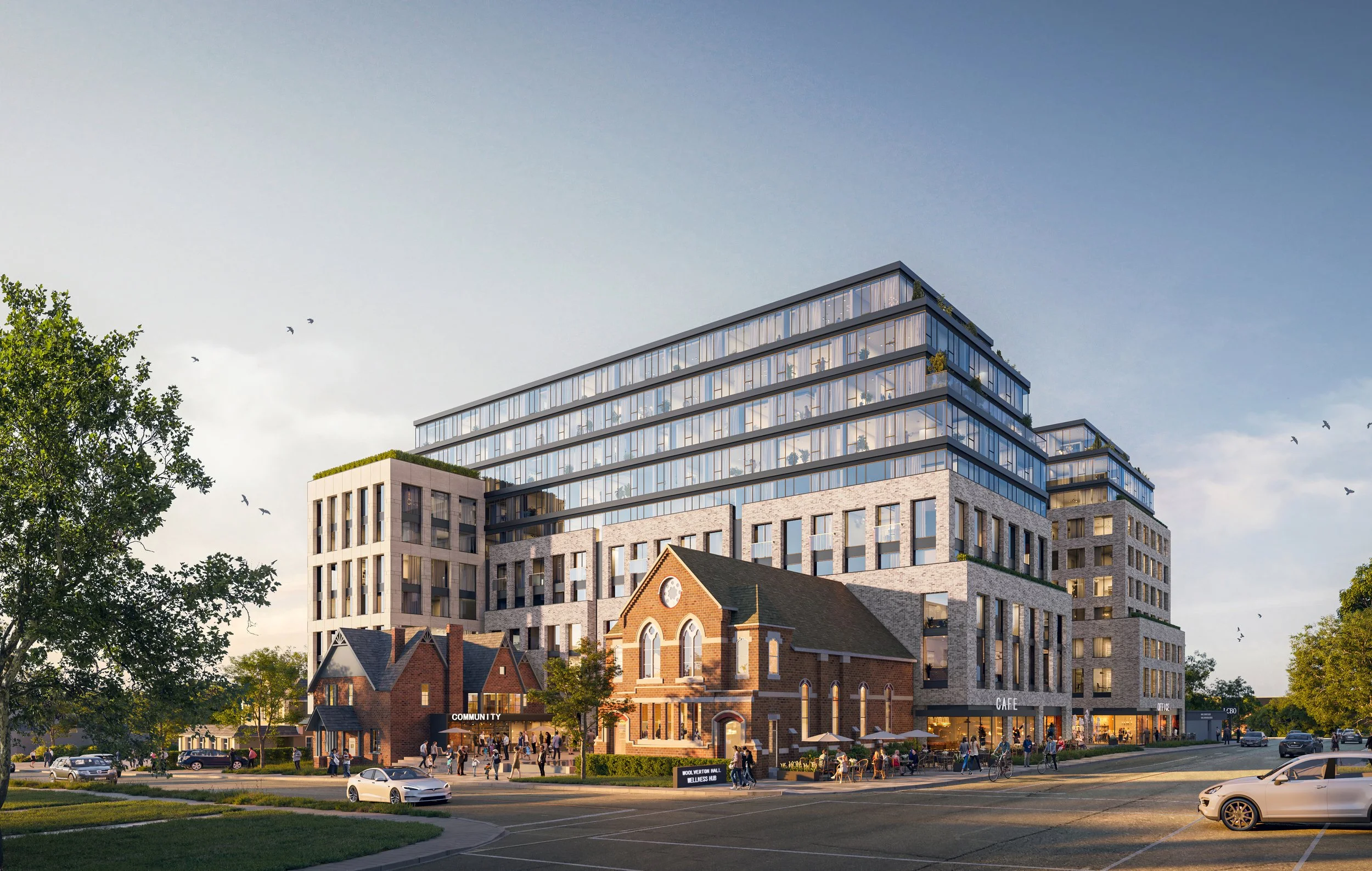 Located at 13 Mountain Street, 19, 21 and 23 Elm street, The Woolverton development will introduce a mix of residential, retail, and community uses, delivering high-quality housing and modern amenities into the community. The contemporary new building will be sensitively integrated with the two historic structures - The Woolverton Hall (former Grimsby Baptist Church) and The Woolverton House.
